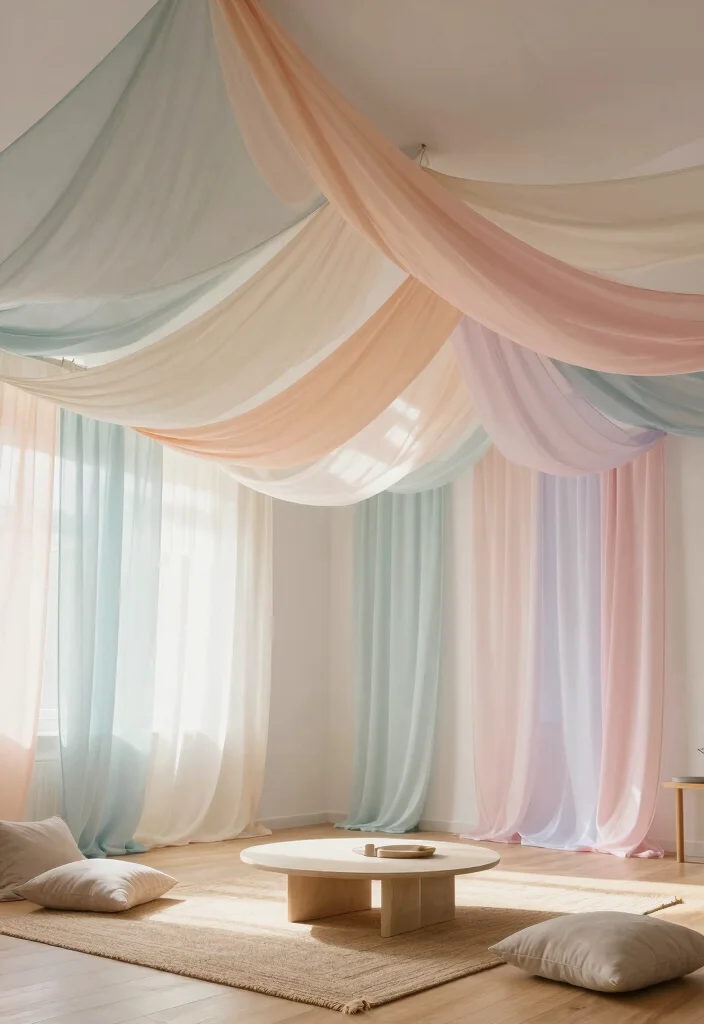 Fabric canopies offer a stylish way to define spaces within open floor plans. Draping sheer, eco-friendly fabrics from the ceiling can create cozy nooks or romantic areas, adding softness and texture to your home. This design element helps delineate different areas while enhancing the overall aesthetic.