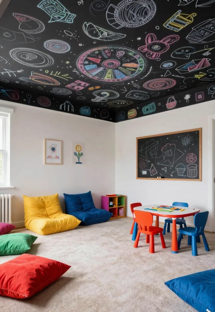 Chalkboard paint isn’t just for walls; it can also transform ceilings into interactive elements! This eco-friendly choice allows you to write or draw directly on the ceiling, making it ideal for playrooms or creative spaces. This dynamic design encourages creativity and can be updated as often as you like, keeping it fresh and engaging.