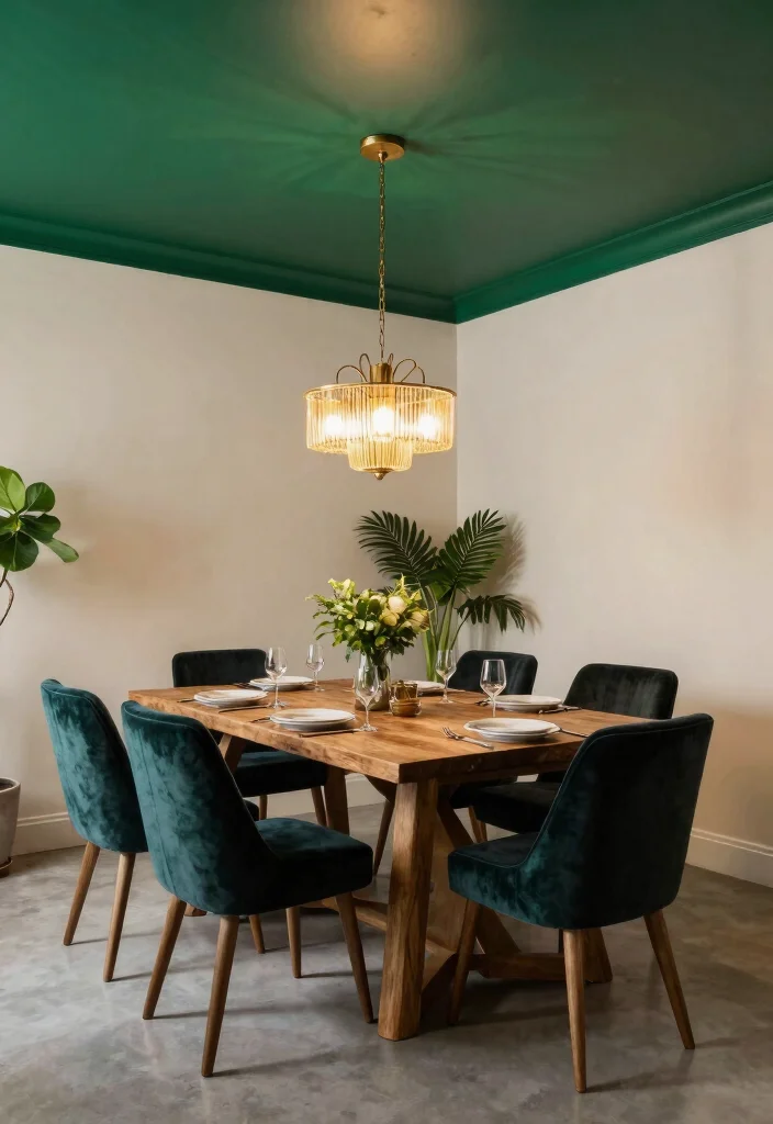 If you want to make a striking impact, jewel tones like emerald green, sapphire blue, and rich burgundy can create a sumptuous atmosphere in your home. These vibrant colors are perfect for dining rooms or living areas, adding warmth and sophistication. Eco-friendly paint in these shades can turn an ordinary ceiling into a stunning focal point.
