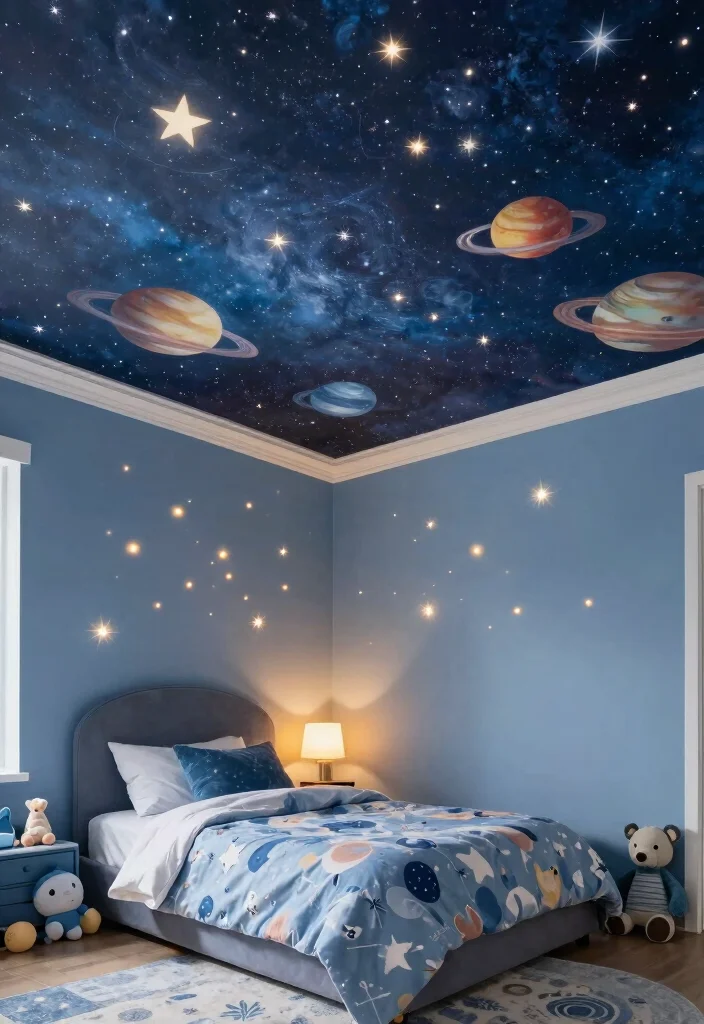 For those who love bold ideas, mural ceilings can turn any space into a stunning canvas. From dreamy skies to lush forests, eco-friendly mural paints can create breathtaking visuals right above you. This design is especially captivating in children’s rooms or creative spaces where imagination is key.
