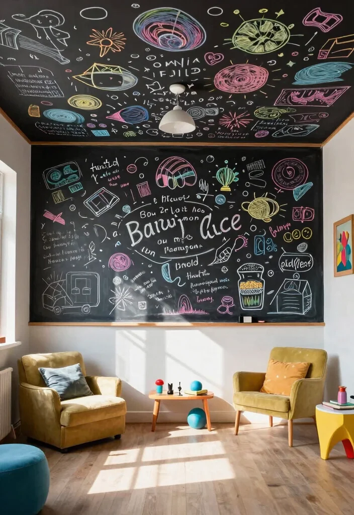 Bring fun and creativity to your home with a chalkboard ceiling! This unique decor idea allows you to express your artistic flair dynamically. You can easily transform your ceiling with chalkboard paint, creating a blank canvas for doodles, quotes, or even a family calendar.