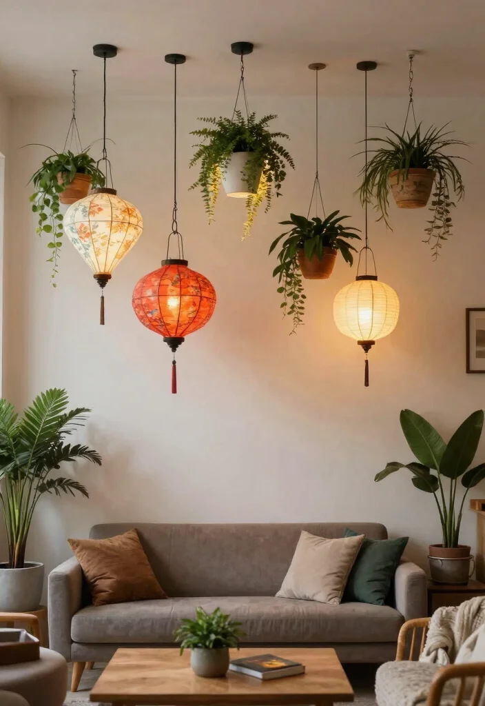 Elevate your ceiling with hanging decor elements that add personal touches and charm! This budget-friendly idea allows you to incorporate lanterns, planters, or decorative ornaments that float above, creating a unique visual experience.