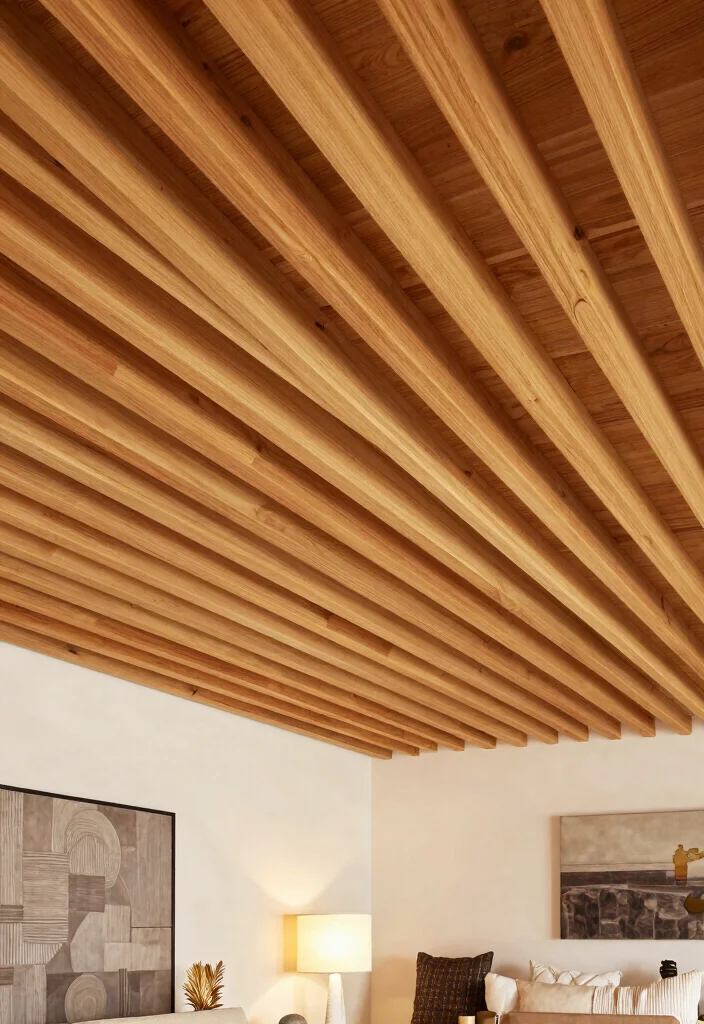 Did you know? A wood slat ceiling with evenly spaced gaps can visually expand a space by up to 20%, making your budget-friendly wood ceiling feel luxe.