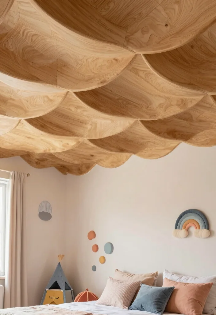 For a whimsical touch, a scalloped wood ceiling design can bring joy and creativity into your space. This unique style adds gentle curves above, creating a cozy atmosphere that’s perfect for children’s rooms or artistic spaces. Imagine a playful bedroom where scalloped designs spark imagination and wonder.