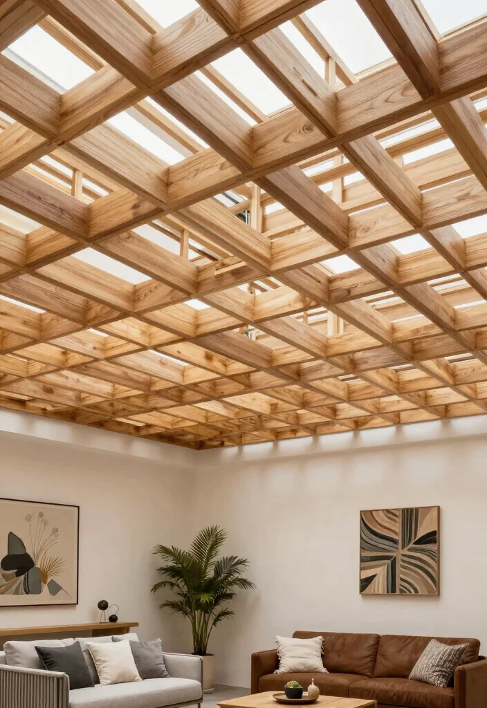 For a unique and airy aesthetic, a wood lattice ceiling can be a stunning choice. This approach involves intersecting strips of wood to create a grid-like pattern, allowing light to flow through and giving your space an open feel. Imagine a sunlit dining area where the lattice design adds a fresh, modern touch to the room.