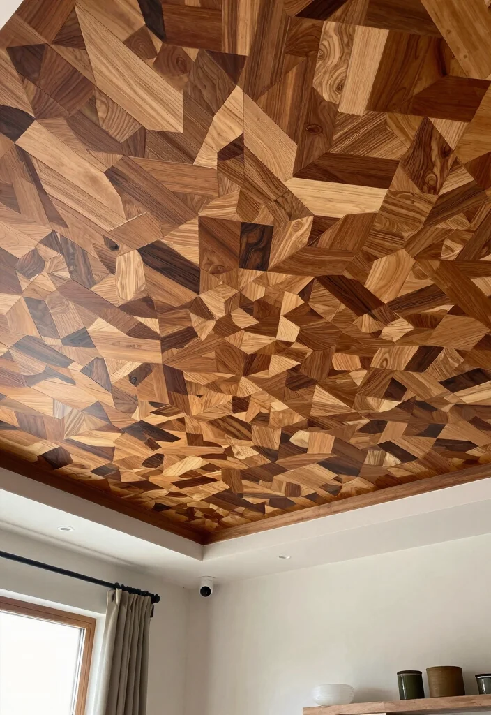 Creating a mosaic ceiling can be labor-intensive, but the results are well worth the effort. Mixing different wood finishes will add depth and character to your design, while incorporating bright colors can give it a modern twist. Make sure each piece is securely attached to ensure safety and longevity.