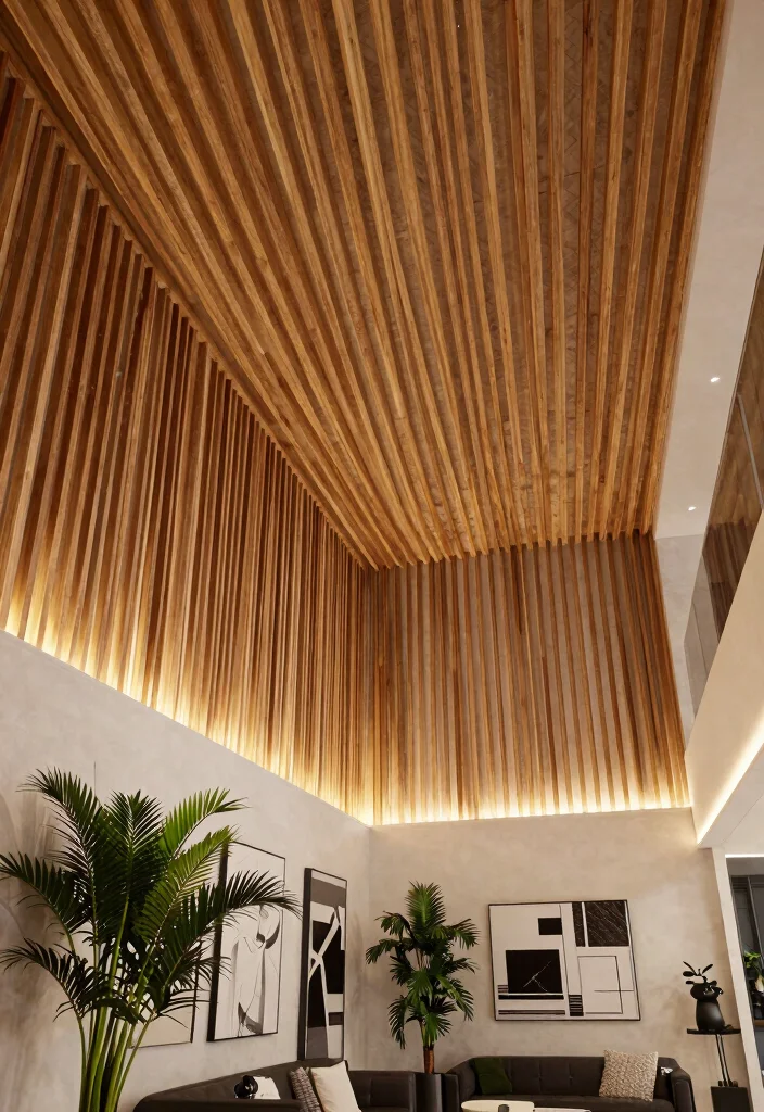 For a modern yet rustic look, consider vertical wood slats for your ceiling design. This approach not only adds height but also introduces a unique aesthetic that blends trendiness with timeless appeal. Visualize a stylish living room where vertical slats guide the eye upward, creating an open and airy feel.