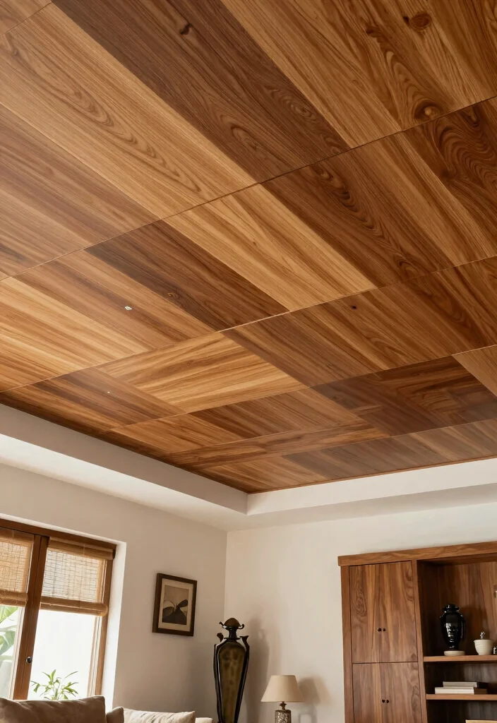 For a sophisticated yet affordable ceiling, wooden ceiling tiles are an excellent option. Available in various styles, these tiles can elevate the elegance of any room while remaining budget-friendly. Imagine a dining room adorned with textured tiles that draw the eye and create an inviting atmosphere.