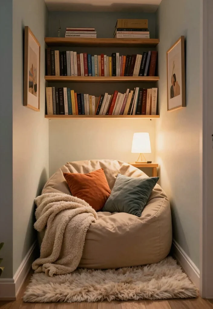 To make this space inviting, choose seating that encourages you to sink in and relax. Incorporate calming colors and soothing artwork to create a tranquil environment. This idea ties into the trend of designing spaces dedicated to mental wellness and personal time.
