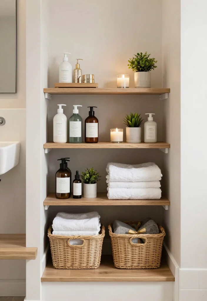 This bathroom storage solution helps maintain a clean and organized environment for your daily routine.