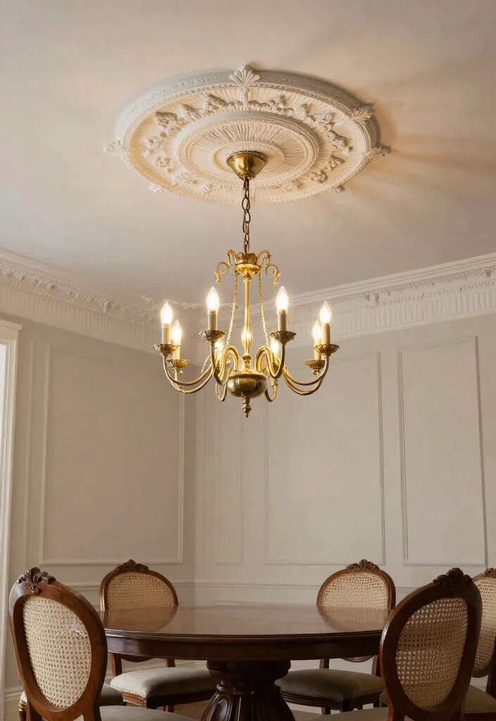 – Materials Needed: Ceiling medallions, adhesive or nails, and paint.