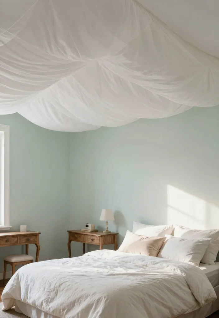 Create a dreamy atmosphere with a fabric draped ceiling, perfect for adding a touch of romance to any space. This approach introduces warmth and texture, making it an excellent choice for nurseries or cozy bedrooms. The flowing fabric creates a whimsical effect that envelops the room in softness.