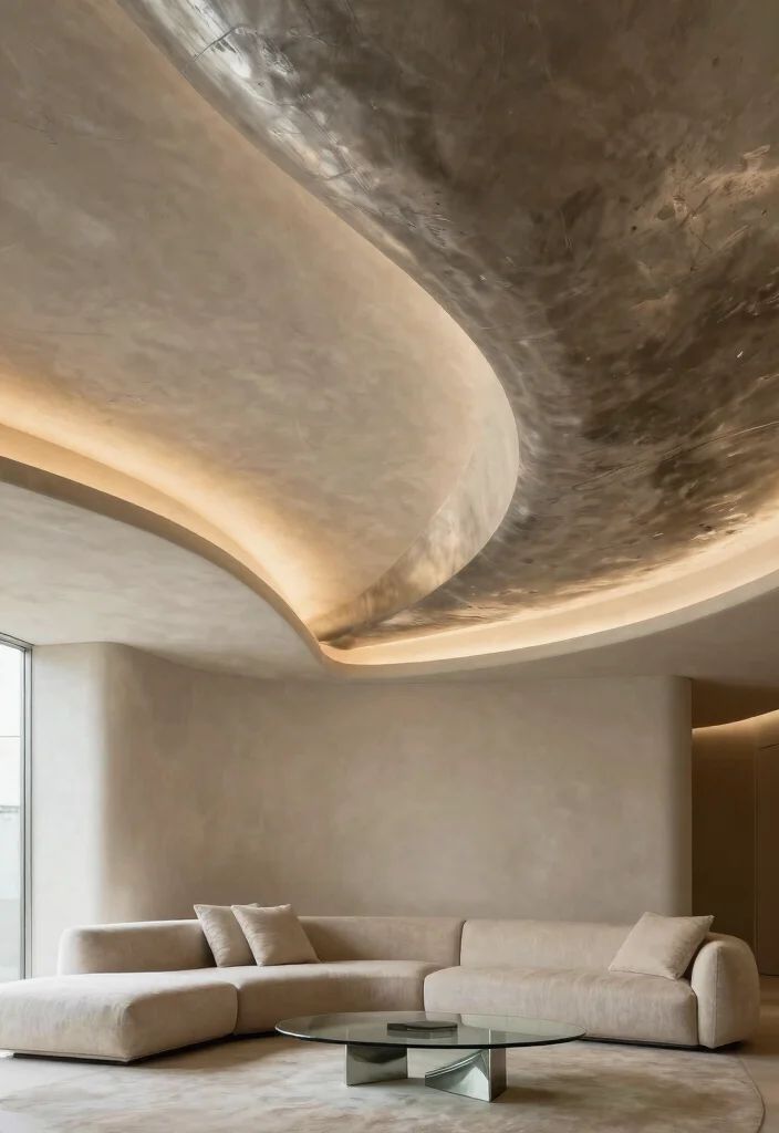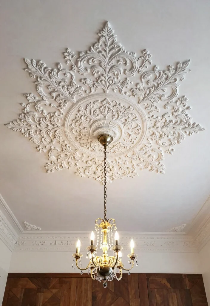 For a touch of luxury, consider intricate plaster molds on your ceiling. Not only does this technique add an artistic flair, but it also allows for personalization and creativity in your design. Using sustainable plastering techniques ensures you’re making an environmentally conscious choice. These molded designs can range from classic to contemporary, fitting perfectly within any decor style. Consider contrasting plaster designs with sleek furniture and minimal decor to make the ceiling stand out even more. Key Tips: – Work with skilled artisans to achieve unique designs. – Paint the plaster in white or soft pastels for a fresh look. – Incorporate built-in lighting within the molds to enhance the effect. Plaster ceilings can also blend seamlessly with smart home technology for added functionality. Issues to Consider: Using plaster requires careful installation; ensure you have the right support structure. Lighting Suggestions: Incorporate crystal or glass chandeliers to accentuate the elegance of the plaster.