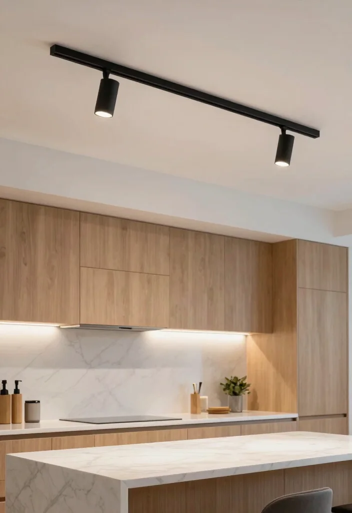 Available in finishes like matte black or brushed gold, track lighting can be tailored to match your kitchen decor seamlessly.