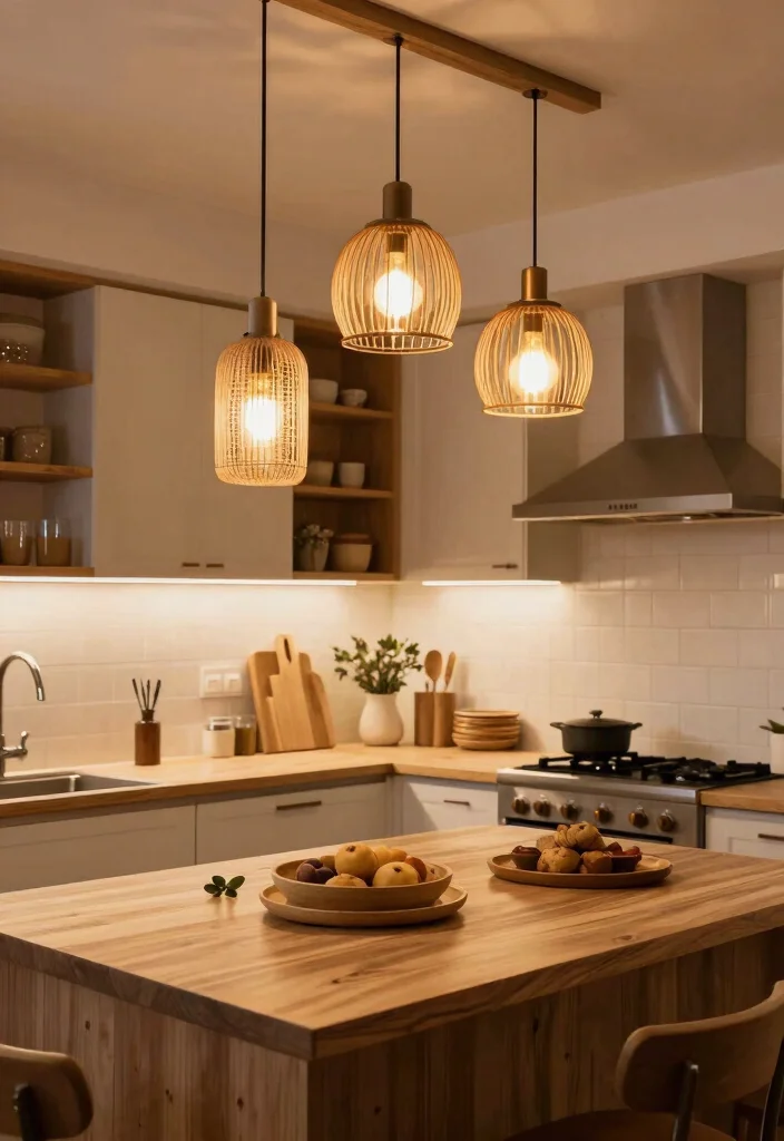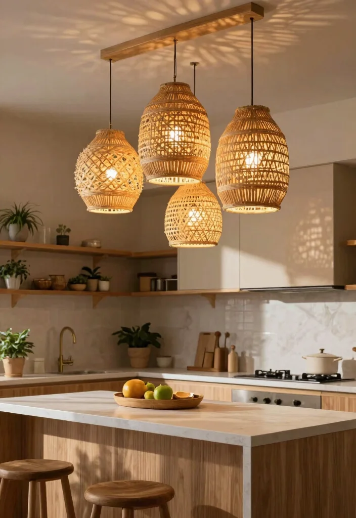 Perfect for bohemian or rustic-themed kitchens, these lights embrace eco-friendly materials while enhancing your space’s character. They offer a beautiful contrast to sleek surfaces and modern appliances.