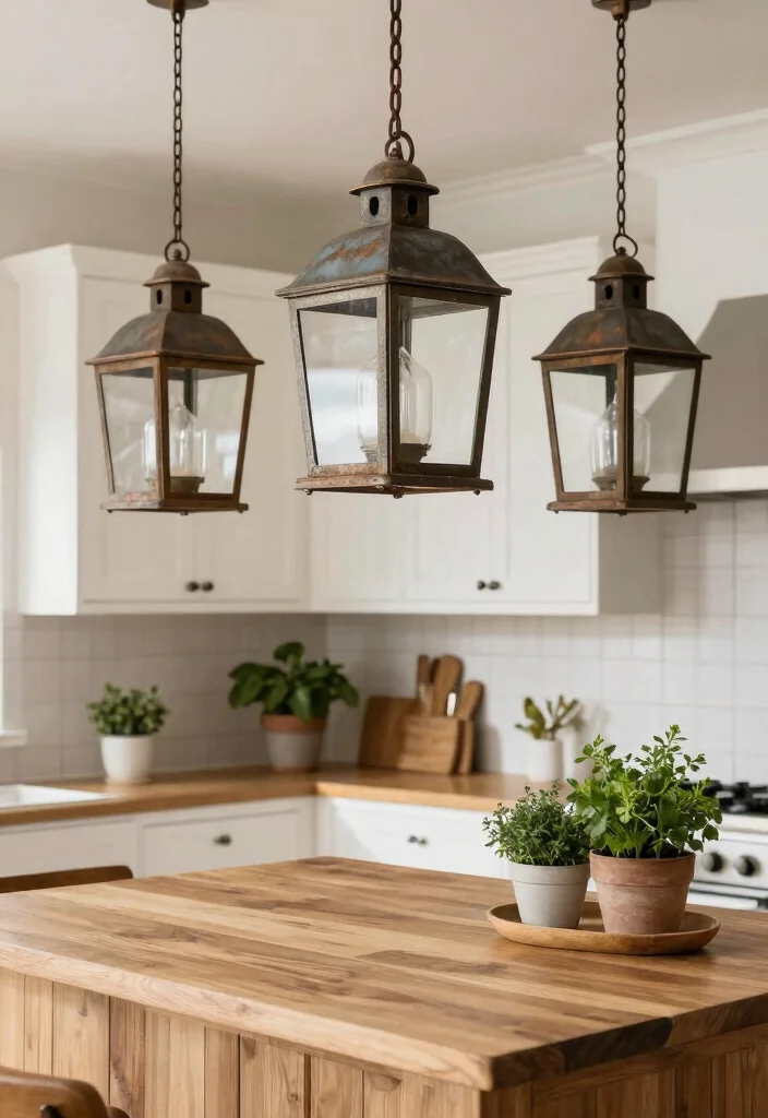 Embracing farmhouse-style lanterns in your kitchen beautifully blends tradition with modern convenience, creating a heartwarming space.
