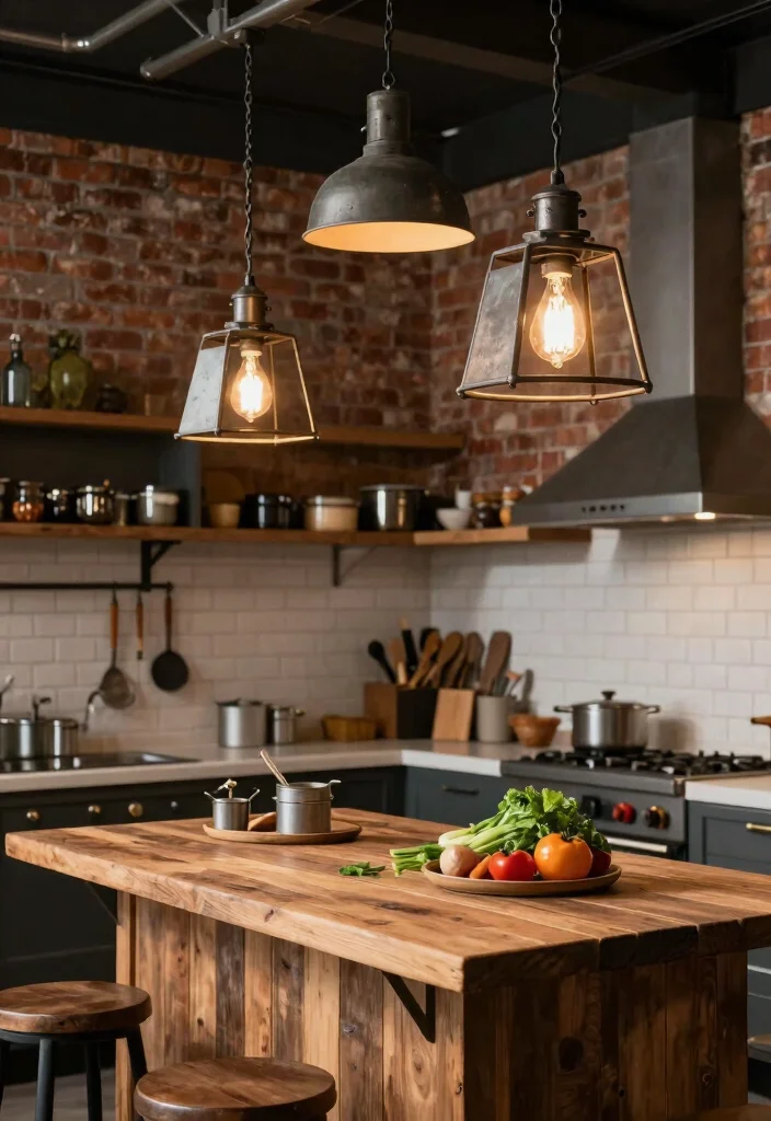Vintage industrial fixtures marry modern utility with rustic charm, making them perfect for a trendy kitchen. Featuring elements like exposed bulbs and metal accents, these lights create a striking statement above your island. They capture the essence of urban design while providing ample illumination for your cooking tasks.