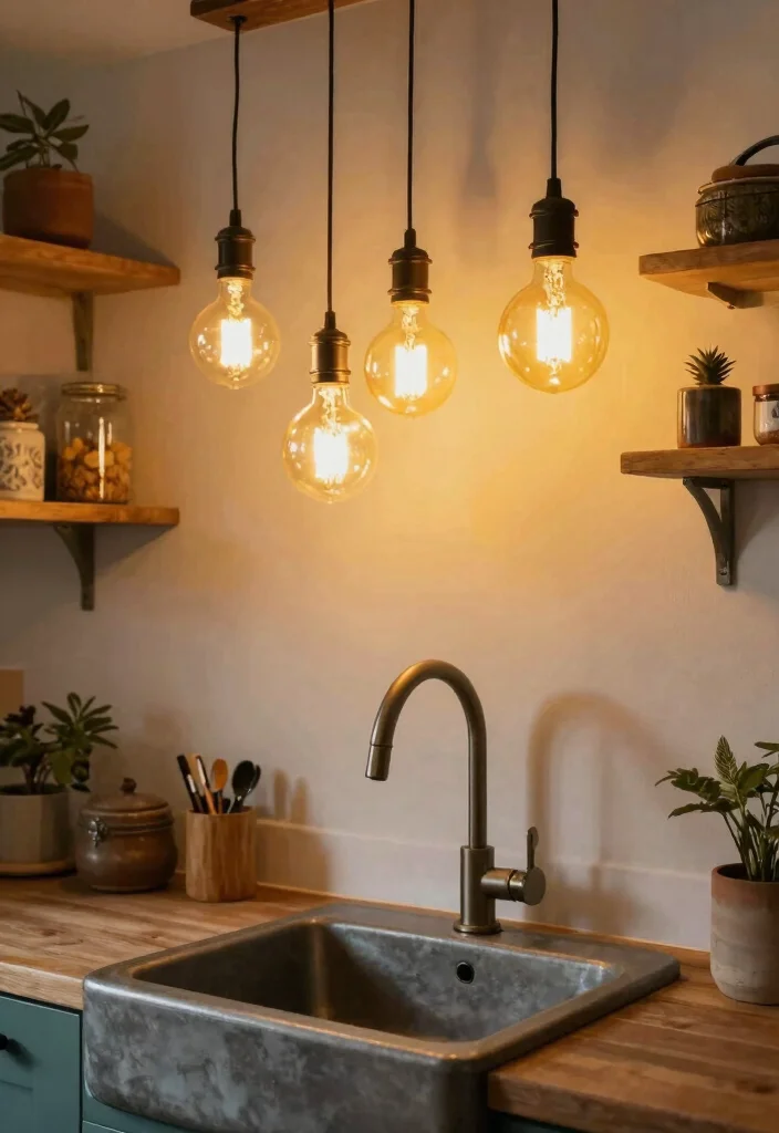 Decorative hanging bulbs bring a unique flair to your kitchen, especially if you prefer a casual, laid-back vibe. These bulbs can be suspended from vibrant cords or cables, allowing you to express your personality with ease. With various styles available—think oversized or uniquely shaped options—you can create a statement above your sink that truly stands out.
