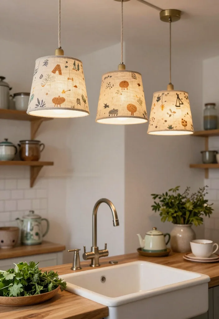 Illustrated pendant lights add a fun and whimsical element to your kitchen decor. Featuring unique designs and patterns, these fixtures can serve as striking focal points above your sink. Their artistic flair makes it easy to express your personality, crafting a kitchen that feels truly one-of-a-kind.