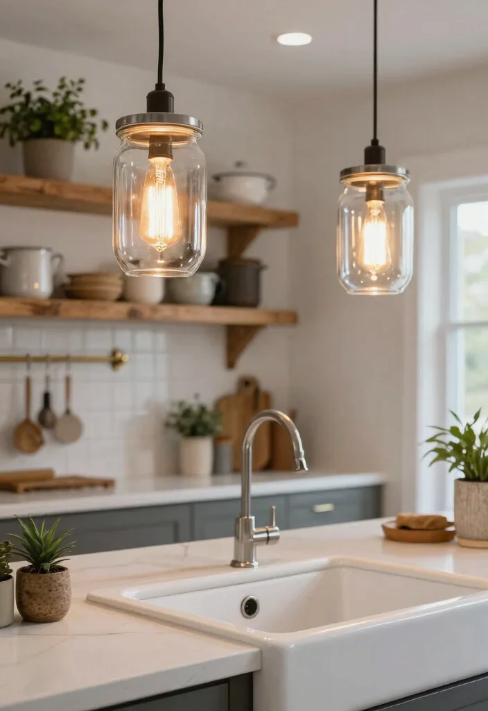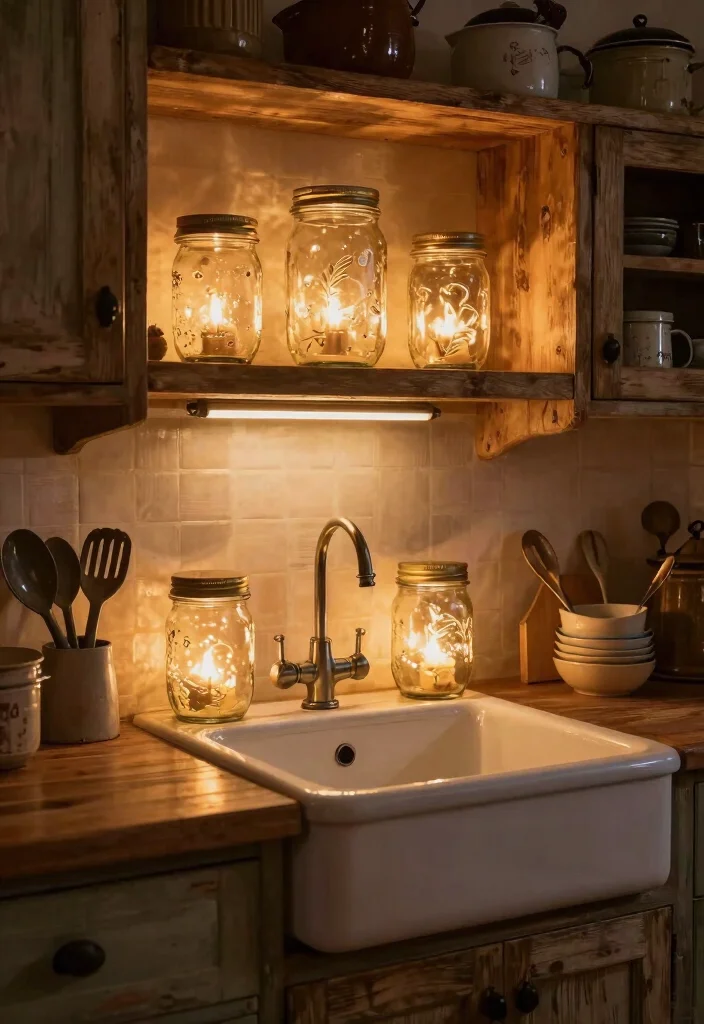 Add a touch of whimsy by filling the jars with twinkling fairy lights or keeping it simple with exposed bulbs. This versatility allows you to customize your kitchen lighting to fit your personal style.