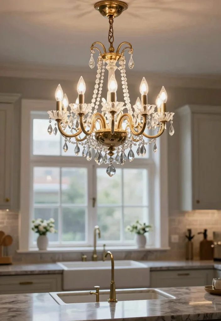 A vintage-style chandelier can transform your kitchen into a sophisticated haven, serving as an eye-catching centerpiece above the sink. These fixtures typically showcase ornate details and classic finishes, perfect for embracing a modern farmhouse aesthetic. Consider designs that feature crystals or decorative arms to elevate the elegance without compromising on style.