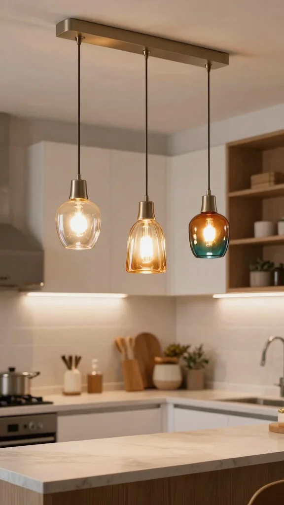 Under-cabinet lighting is a fantastic choice for those without a kitchen island. It combines functionality with style, providing essential task lighting while keeping your kitchen looking sleek. This option is budget-friendly, easy to use, and can dramatically improve the cooking experience by illuminating work surfaces. Plus, it enhances the overall ambiance without taking up any extra space.