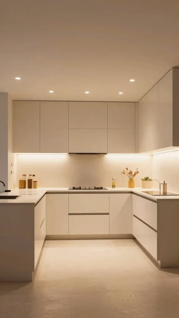This lighting creates a warm glow that deepens the visual appeal of your kitchen, all while maintaining a streamlined look. Opt for energy-efficient warm white LEDs to foster a welcoming atmosphere, and consider adding dimmer switches for added versatility during dinner gatherings.