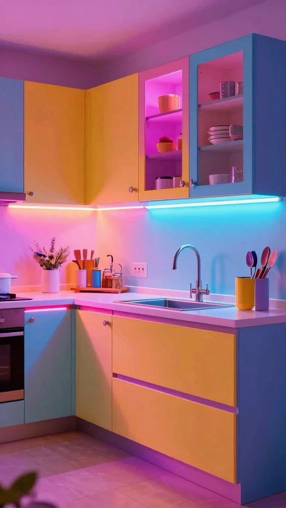LED strips can transform your kitchen into a lively space, combining functionality with a playful ambiance.