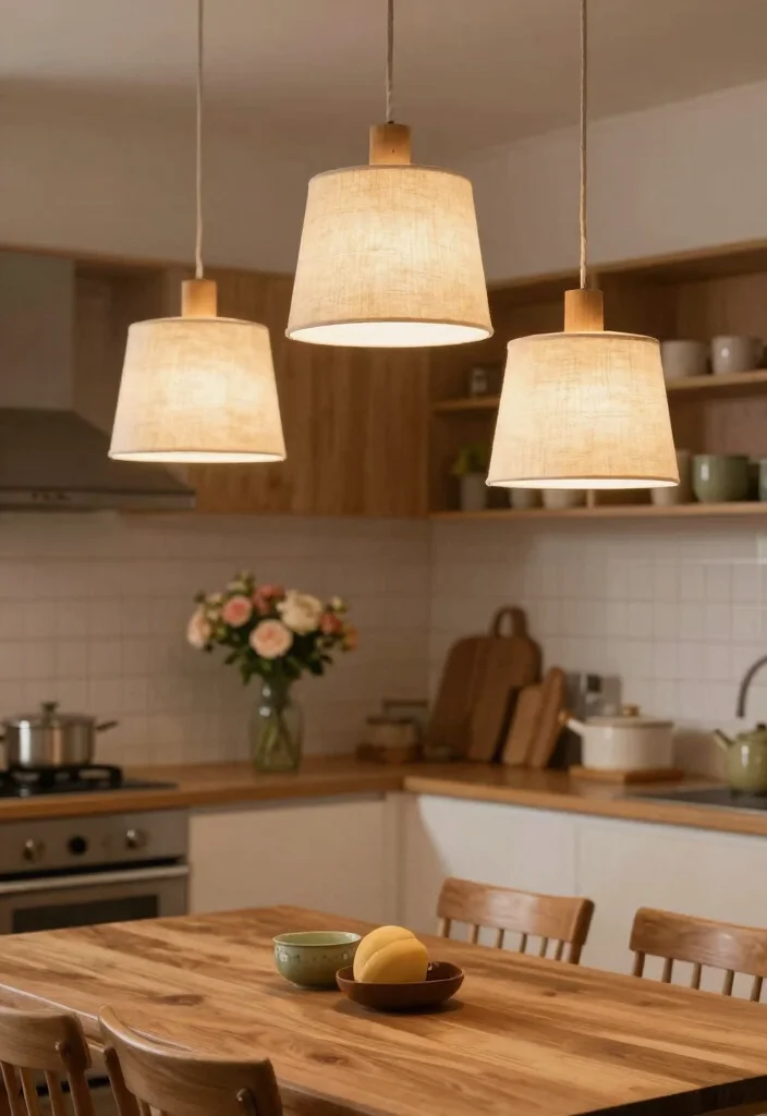 This combination not only softens the lighting but also creates a welcoming environment, perfect for family meals and gatherings.