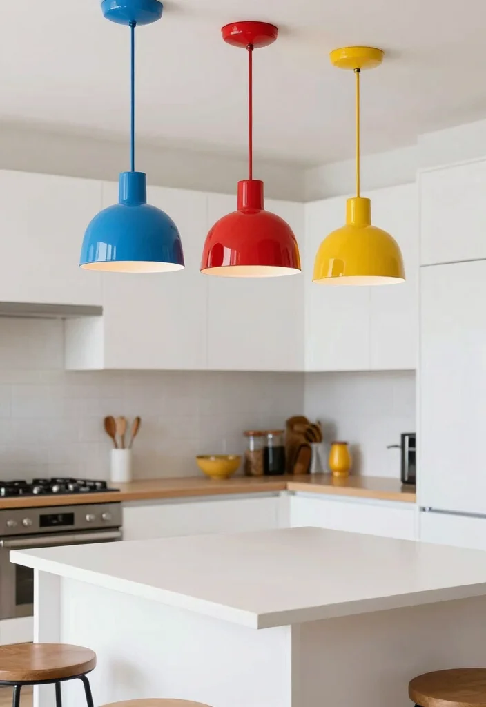 Add a vibrant pop of color to your kitchen with retro-style colorful pendant lighting. These fixtures often feature bold hues and playful designs that harken back to the lively styles of the 60s and 70s, infusing your space with character and joy. Whether you choose a single standout piece or mix several fixtures, colorful retro lights can brighten up any kitchen.