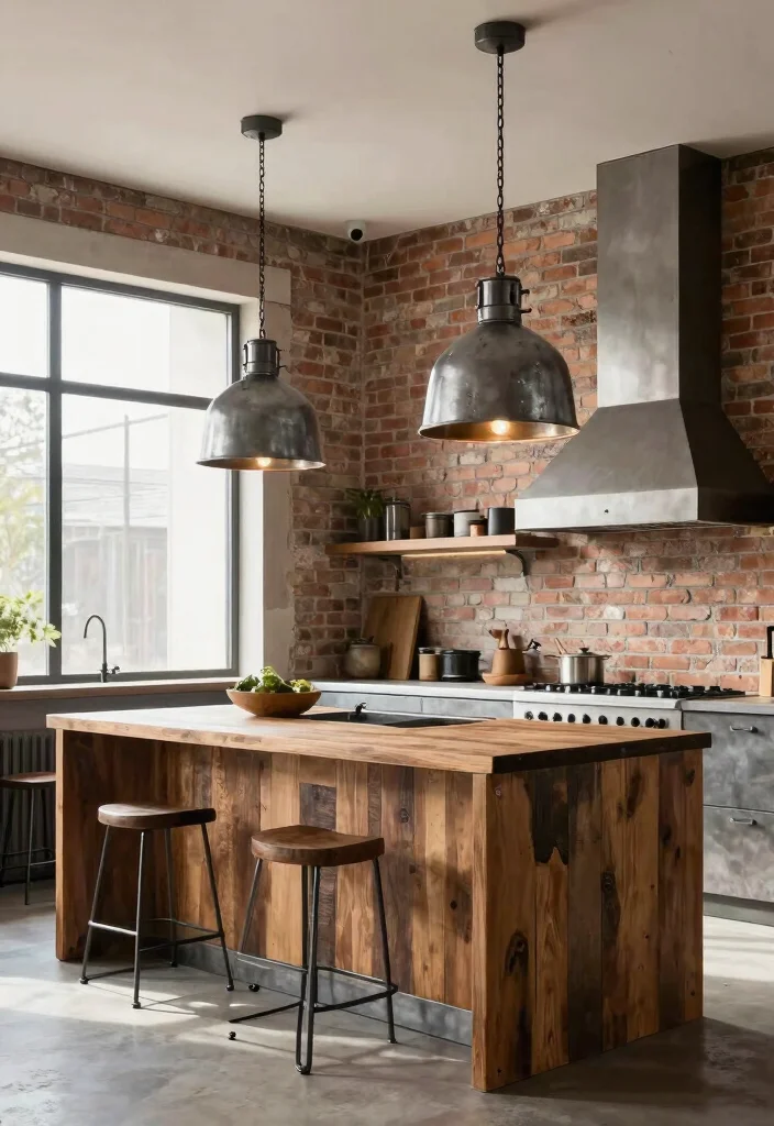 Fun fact: In kitchen pendant lighting, industrial metal fixtures in steel or iron last 20+ years with minimal maintenance. Pairing these raw finishes with rustic elements creates a practical, bold contrast that instantly elevates any kitchen.