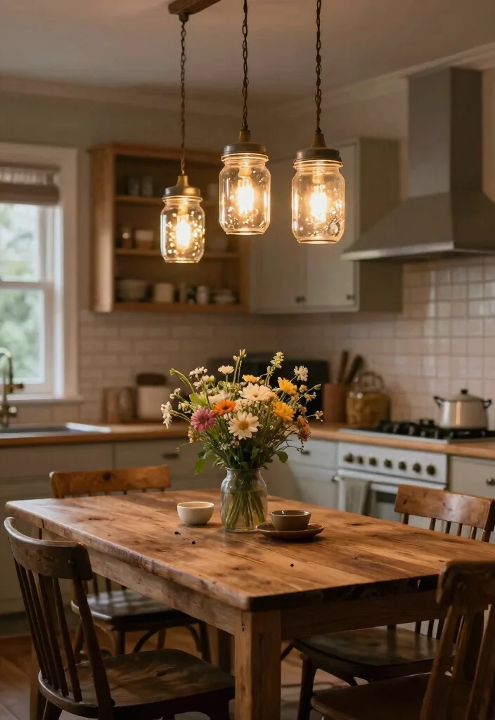 Mason jar pendant lights encapsulate the essence of rustic charm and playfulness in your kitchen. These fixtures can be utilized in their classic form or transformed into stylish light sources, perfect for farmhouse aesthetics. The whimsical nature of mason jars brings a personal touch that resonates with DIY enthusiasts and those who appreciate a cozy vibe.