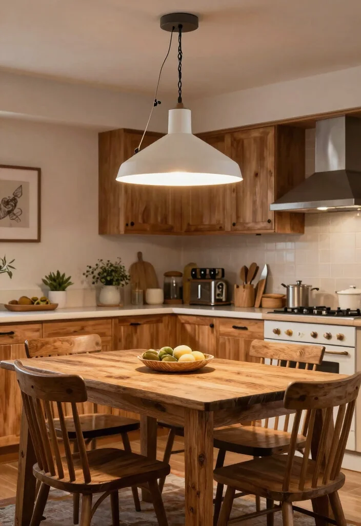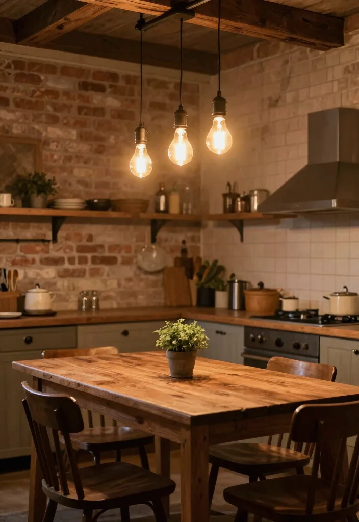 Fun fact: Adjustable lighting fixtures can cut your kitchen table lighting energy use by up to 30% when you dim for dinner and brighten for homework. It’s all about height, intensity, and a cozy rustic touch.