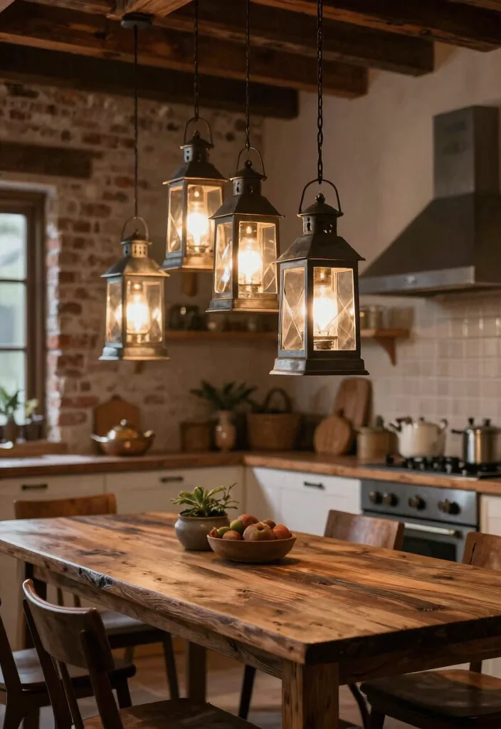 Lantern-style lights evoke cozy evenings spent outdoors, bringing comfort to your kitchen table. Incorporating these fixtures can create a warm, inviting dining experience.