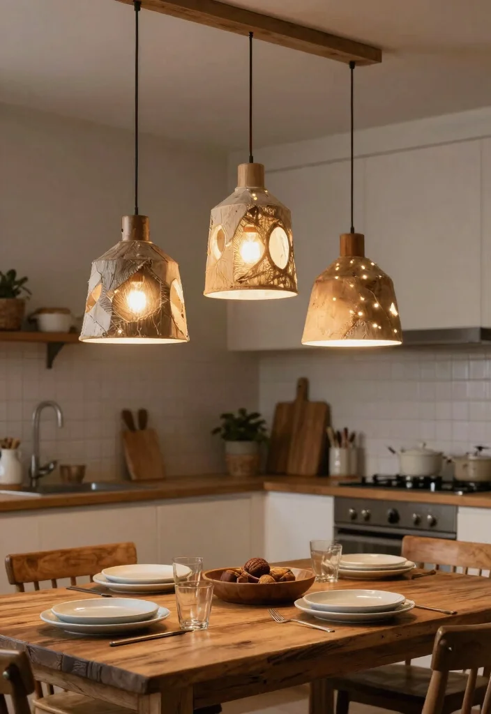 Yes—pendants are a core tool for rustic spaces. Styles that work well include metal lanterns, bell-shaped pendants, and mason jar-inspired fixtures. For a balanced look, group 2–3 pendant lights over a rectangular table or align a single central pendant on a round table. Hang them about 30–34 inches above the tabletop and ensure a dimmer is in place so you can switch from bright kitchen table lighting for family meals to cozy evenings.