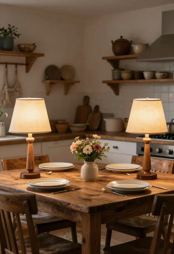 Table lamps can add a warm glow to your kitchen table, transforming it into a cozy gathering spot. Opt for rustic designs featuring wooden bases or ceramic finishes that complement your decor beautifully.