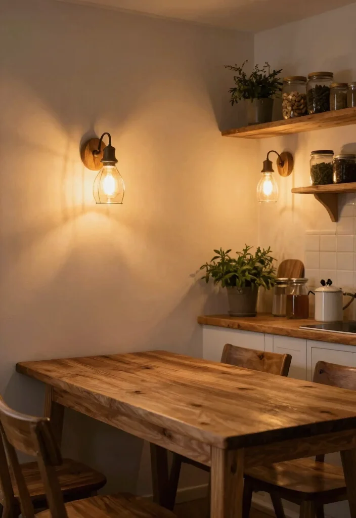 Incorporating wall sconces into your kitchen can significantly enhance the ambiance around your table. Choose rustic styles that harmonize with your decor while providing soft, inviting light.