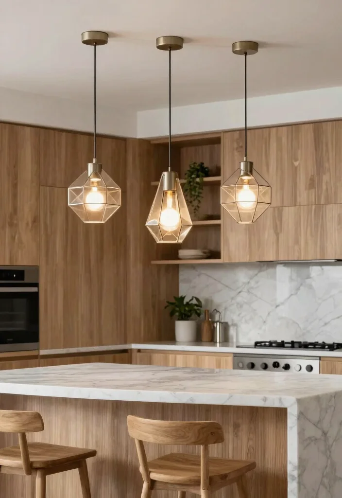 Geometric pendant lights stand out in modern kitchens, infusing your island space with artistic flair. Their bold angles and distinctive shapes create a striking focal point, enhancing visual interest and contemporary style. Opt for materials like brass or matte black to achieve a chic and sophisticated look that captivates the eye.