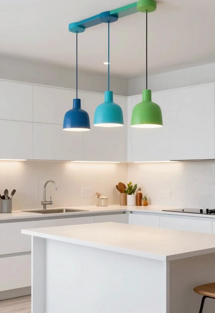 Adding colorful pendant lights to your kitchen island can infuse fun and vibrancy into your space. These fixtures can serve as bold statement pieces, breaking up the neutral tones typical of modern kitchens with lively hues.