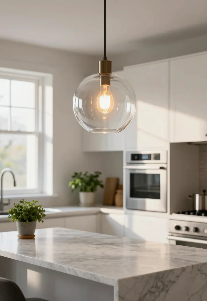 Glass pendant lights bring an airy elegance to your kitchen, enhancing any design scheme with their versatility. Available in various shapes, these fixtures can range from clear for a minimalist look to frosted for a softer ambiance, beautifully complementing your island area.