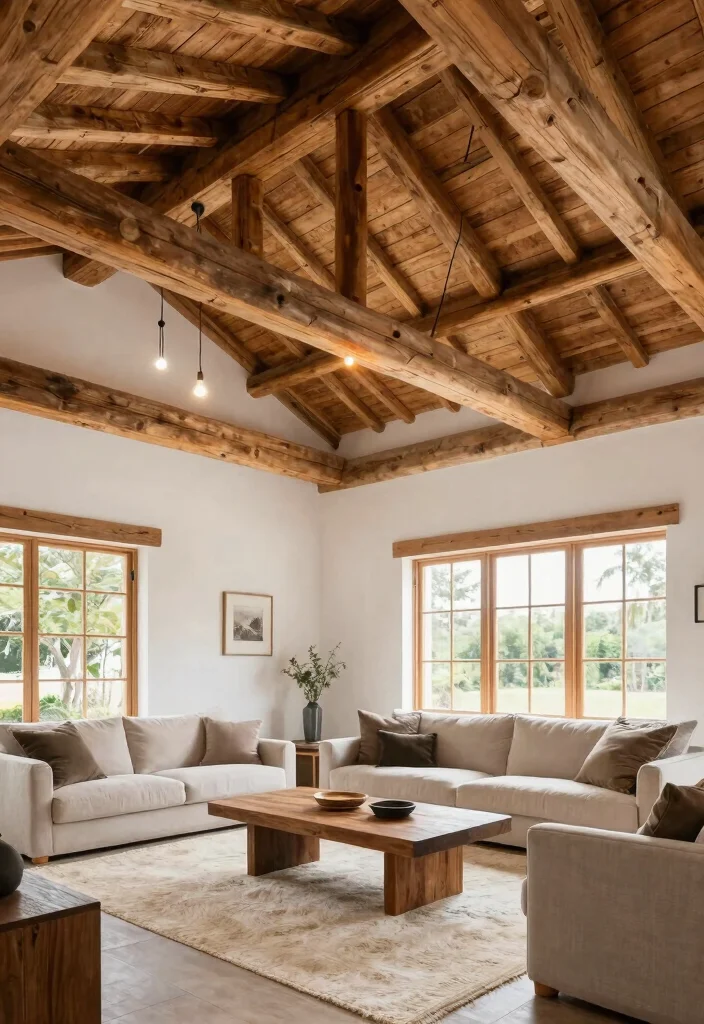To implement this look effectively, consider pairing wood beams with lighter wall colors to keep the space feeling open. If you’re on a budget, look for faux wood options or even decorative beams that offer a similar aesthetic without the hefty price tag. This style aligns beautifully with current trends toward natural materials and earthy tones, enhancing the emotional comfort of your home.