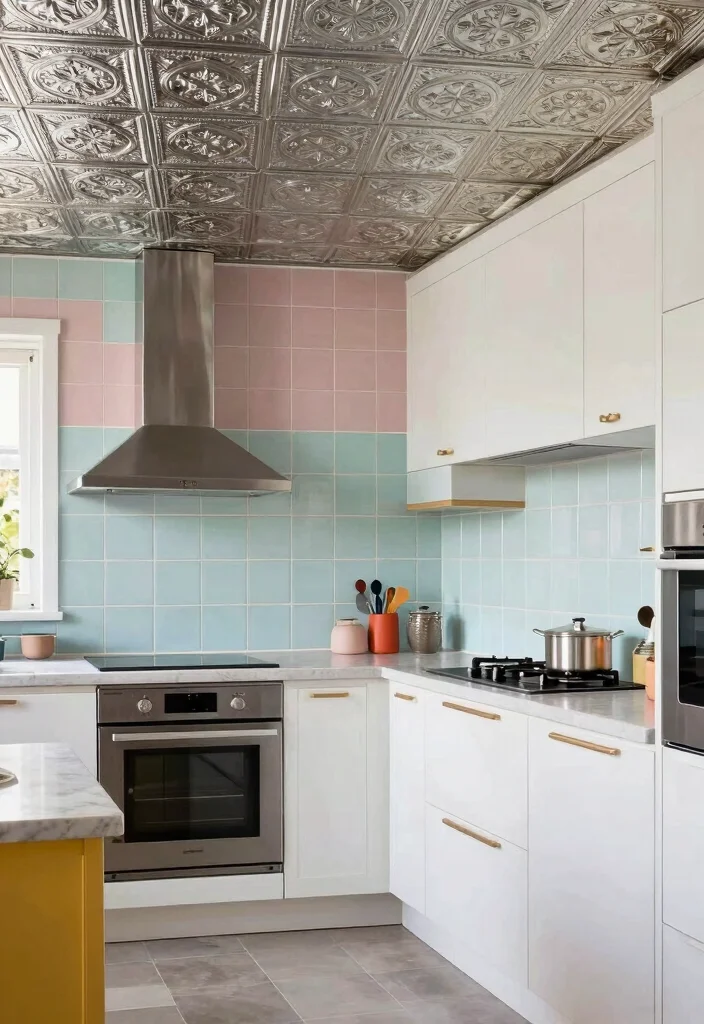 Tin ceiling tiles are enjoying a revival, bringing vintage charm to modern interiors. Timeless and versatile, these tiles can be left in their original metallic finish or painted to match your decor. Opting for reclaimed materials adds an eco-friendly touch to your stylish choice.