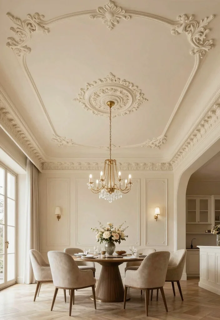 Hiring a skilled artisan can bring your vision to life with unique plaster designs tailored to your taste. Maintenance is minimal, and you can easily repaint plaster ceilings for a fresh update when needed. This option is ideal for formal living and dining spaces where elegance is key.