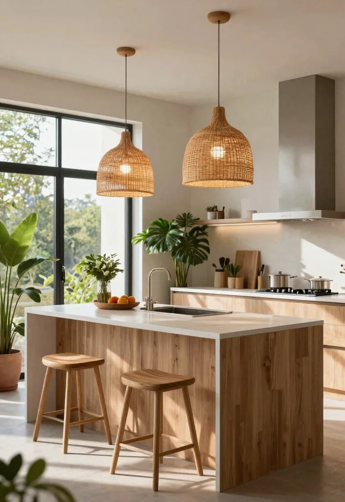 Biophilic design brings the outdoors inside, and nature-inspired fixtures—wood, rattan, or stone—are more than lamps, they’re living design. Pair warm textures with smart placement to boost mood and reduce clutter. For a modern kitchen island lighting plan, choose nature-inspired fixtures to invite calm daily.