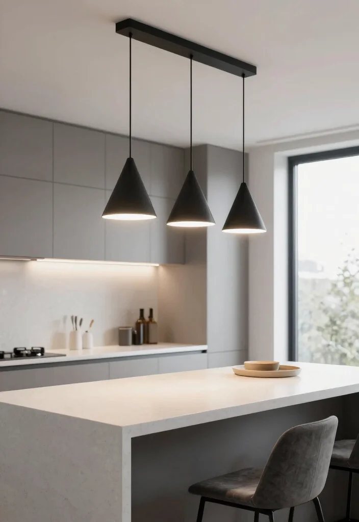 Did you know minimalist lighting can make a small kitchen feel up to 20% larger? With clean lines and fewer fixtures, your modern kitchen island lighting stays calm, functional, and easy to match—perfect for sustainable modern design.