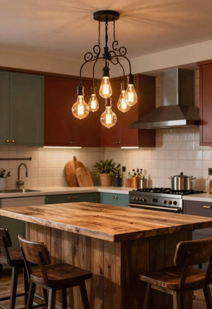 Vintage-inspired lighting can infuse warmth and character into your modern kitchen island. Think of charming Edison bulbs, rustic wrought-iron fixtures, or reclaimed wood designs that evoke nostalgia. These pieces can serve as striking conversation starters while beautifully contrasting contemporary elements.