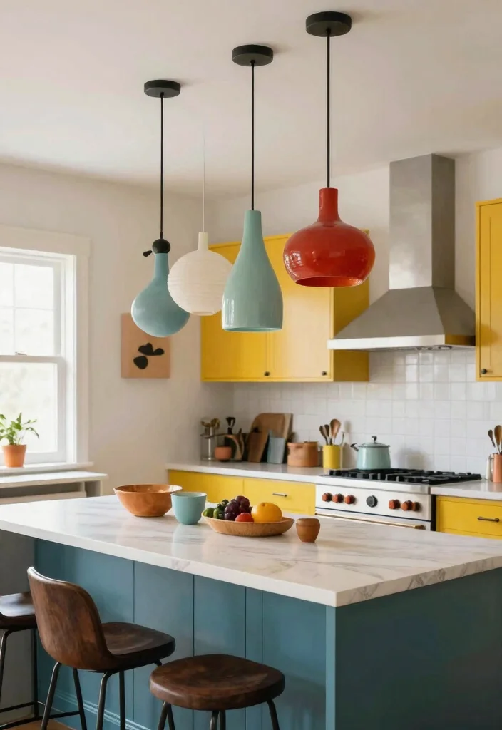 Select bold-colored pendant lights to serve as eye-catching statement pieces above your kitchen island.
