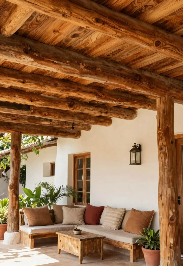 To make the most of this design, consider mixing various wood stains for added depth. You can also coordinate the colors of your ceiling beams with your outdoor furniture for a unified aesthetic. Adding pendant lights from the beams not only elevates the style but also creates a warm ambience for evening gatherings.