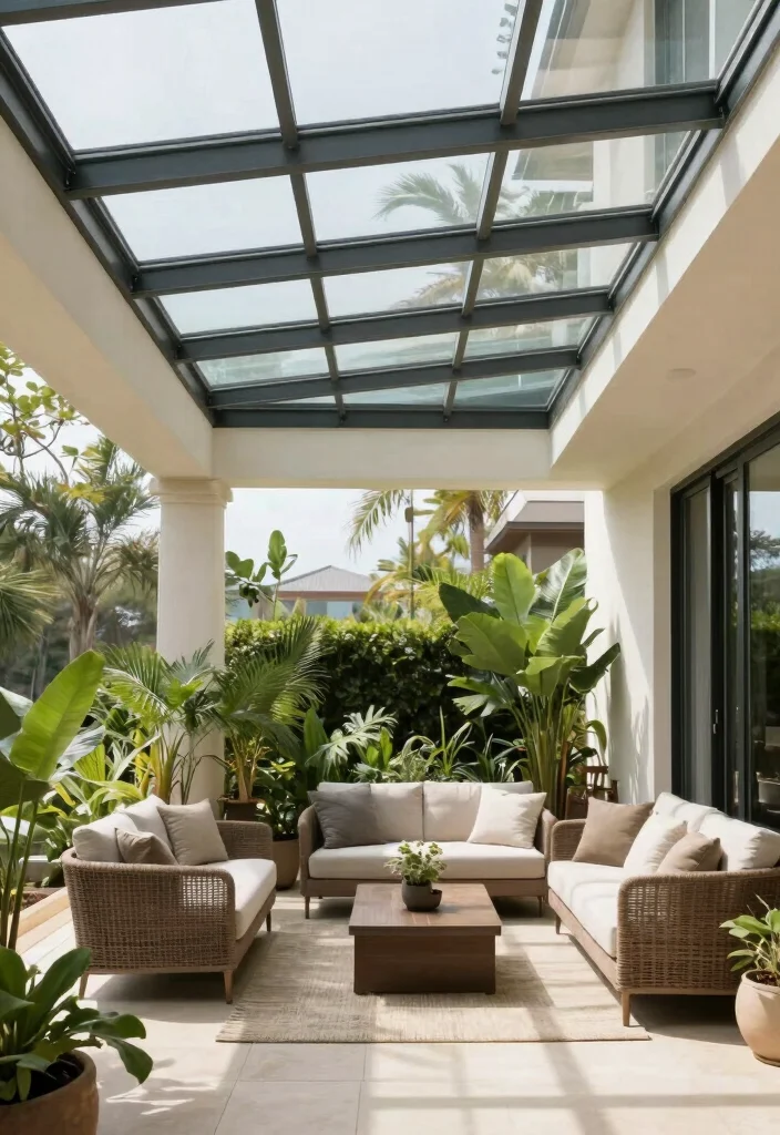 For a bold and modern approach, glass ceilings can elevate your porch design to new heights. This option allows abundant natural light to pour in, making your space feel open and airy. You can choose clear glass panels for unobstructed views or frosted glass for subtle elegance. Glass ceilings create a seamless connection with the sky, providing stunning views of the stars at night.