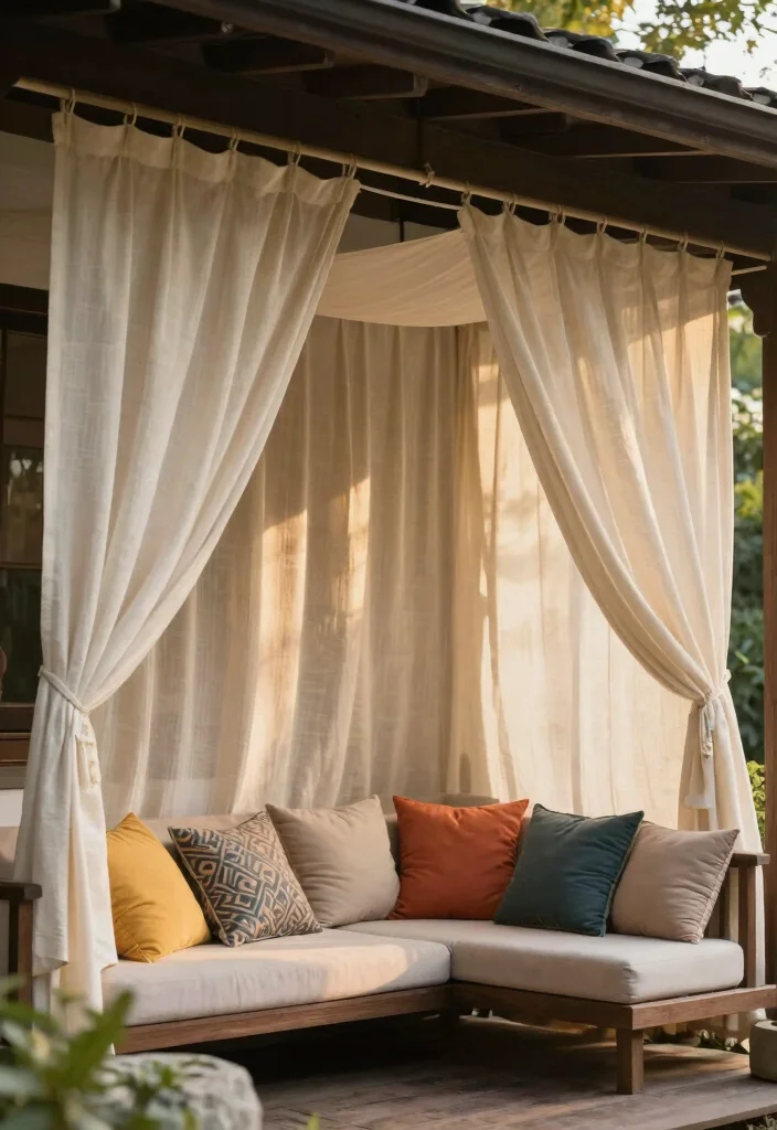 This design creates a whimsical, tent-like atmosphere, making your porch an enchanting space for gatherings.